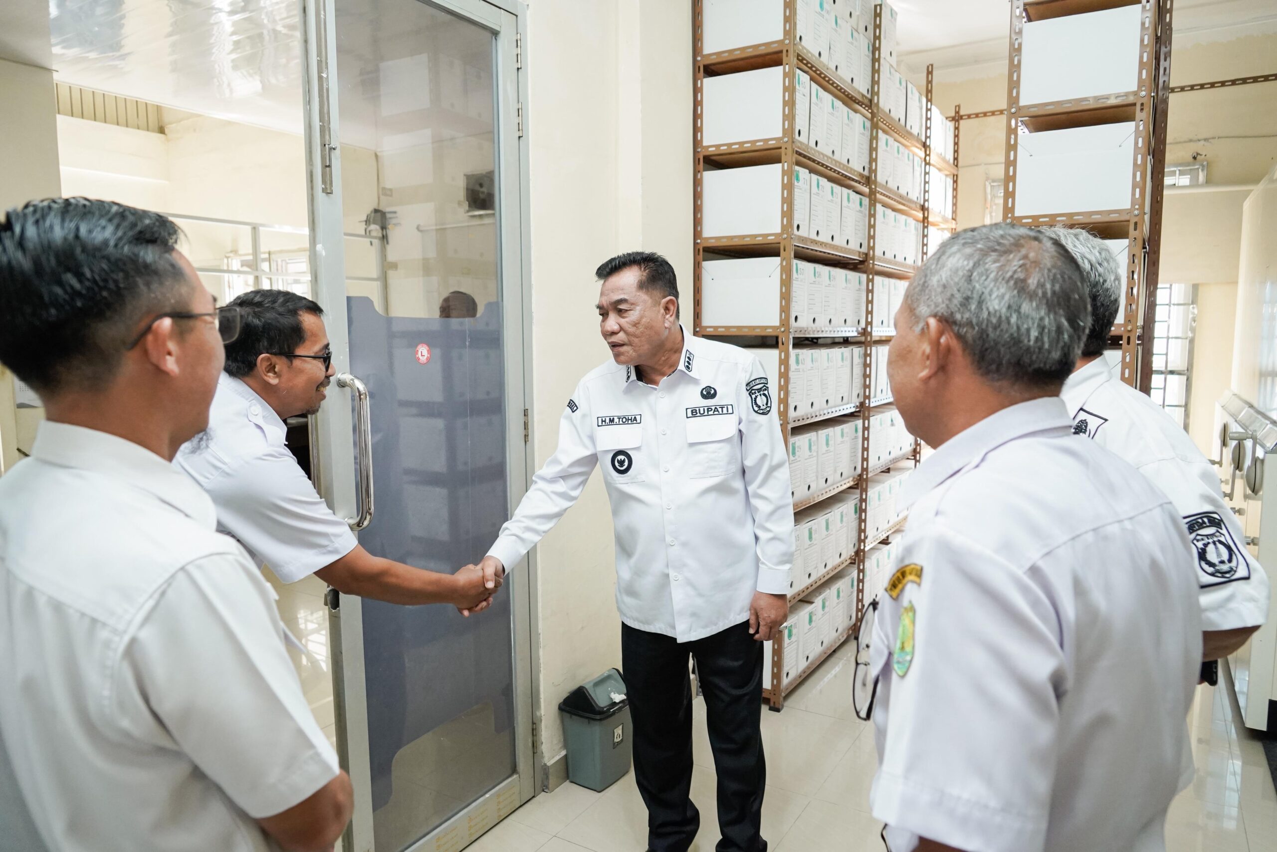 Bupati Muba didampingi Plt Asisten I dan Plt Asisten II dan sejumlah kepala OPD, Wak Toha menyapa langsung para pegawai, bercengkerama santai, dan meninjau beberapa bagian strategis di lingkungan Setda. Diantaranya Bagian Sumber Daya Alam, Kantor Para Asisten, BPKAD, Bagian Organisasi, BAPPEDA, hingga Satpol PP.