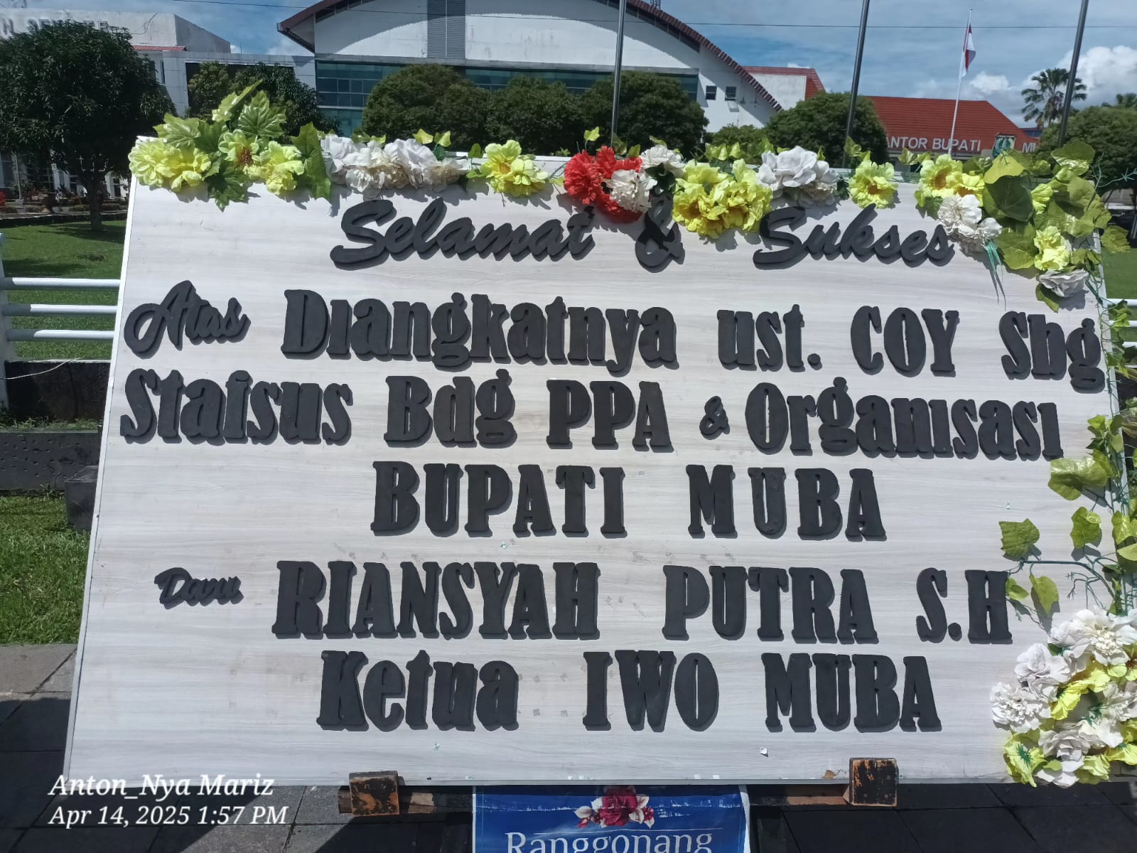 MUBA // harianmusi.com Kantor Pemerintah Kabupaten Musi Banyuasin Dibanjiri Papan Ucapan Karangan Bunga, Pada Senin (14/04/2025).