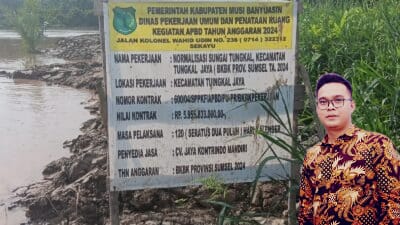 MUBA // harianmusi.com Paket Proyek Normalisasi Sungai Tungkal, Kecamatan Tungkal Jaya Kabupaten Musi Banyuasin melalui alokasi anggaran(BKBK Prov Sumsel TA. 2024) Satuan Kerja Dinas Pekerjaan Umum dan Penataan Ruang Kab. Musi Banyuasin di duga hanya menjadi ladang korupsi