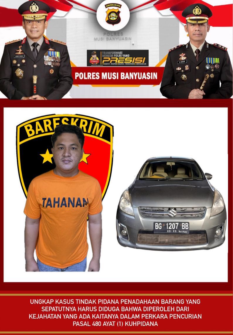 “Kronologinya pada 08 Juni 2025, pelaku “Y” mencuri mobil jenis Suzuki Ertiga dengan Nopol BH 1207 BB yang saat itu terparkir di depan rumah korban.korban segera melaporkan insiden tersebut ke Polsek Babat Toman.atas hal tersebut korban mengalami kerugian yang ditaksir sekitar Rp 100 Juta,”ungkap IPTU Lekat.
