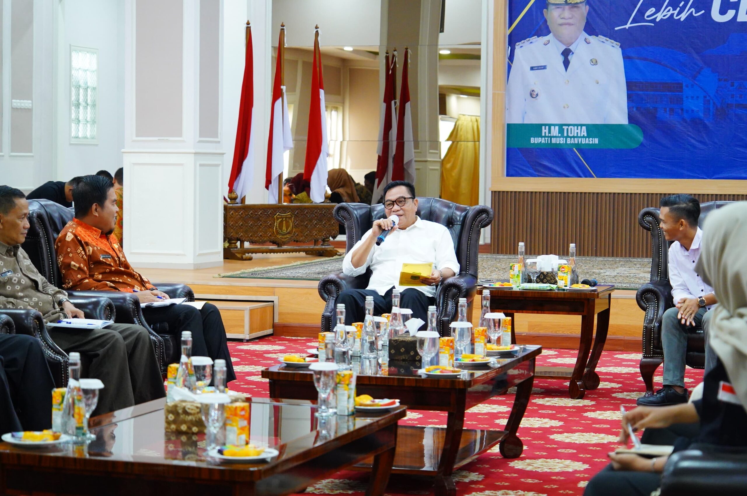 SEKAYU // harianmusi.com Bupati Musi Banyuasin (Muba) H M Toha SH menerima audiensi jajaran Pengurus Ikatan Mahasiswa Musi Banyuasin (IMMUBA) di Guest House Griya Bumi Serasan Sekate, Jumat (25/7/2025).