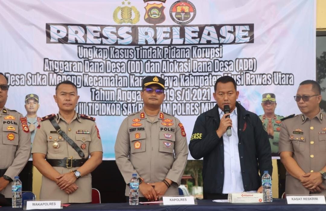 Kapolres Muratara AKBP Rendy Surya Aditama SH SIK MH, menyampaikan bahwa penetapan ini didasarkan pada bukti yang kuat, termasuk hasil audit kerugian negara.