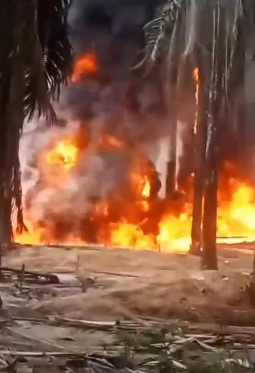 MUBA // harianmusi.com Tragedi kebakaran sumur minyak kembali terjadi di wilayah perkebunan kelapa sawit PT Hindoli Kecamatan Keluang, Pada Selasa (20/01/2026).